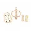 Ploščato grizalo je majhno in lahko ter je tako idealno za male rokice. Na hrbtni strani so izbokline, ki nežno masirajo otroške dlesni in lajšajo bolečine. Ob strani ima odprtino, namenjeno pripetju.