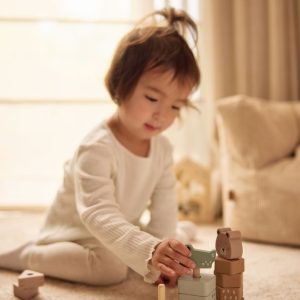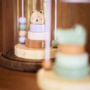 Izdelano je iz skrbno izbranih, varnih in trajnostnih materialov, ki vključujejo naravni les in mehak bombaž. Leseni obroček je gladek, trpežen in prijeten na dotik, kar zagotavlja udobno izkušnjo pri grizenju. Mehka zajčja ušesa iz bombaža ponujajo prijetno teksturo, idealno za raziskovanje in igro. Vse sestavine so brez škodljivih kemikalij in strupenih barvil, kar zagotavlja popolno varnost za vašega malčka.