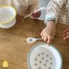 Silikonska sesalna baza pritrdi skledico na mizo, tako da skledica zagotovo ne zdrsi in pomaga zmanjšati nerede med obrokom. Bolj kot je gladka površina, večji bo sesalni efekt na podlago.