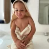 Najmehkejša brisača s kapuco, z motivom Pande, ročno sešita iz 100% premium bombaža, ki je izredno mehak in vpojen. Zaradi večslojnih tetra plasti je neverjetno nežna do kože in las, veliko bolj kot klasične brisače. Tako bo kopanje v banji, na bazenu ali morju polno veselja.