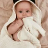Ker je malenkost večja od klasičnih otroških brisač, se bodo z veseljem vanjo ovili tudi večji malčki do velikosti 115 cm.