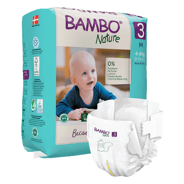Pleničke Bambo Nature so mehke, udobne in poskrbijo, da tudi najobčutljivejša otroška koža ostane suha. Pleničke imajo izjemno vpojno jedro in uporabljajo najnovejšo tehnologijo vpojnih kanalčkov, ki vlago odvaja od dojenčkove kože in zadrži tudi večkratno močenje – celo ponoči. Praktičen indikator vlažnosti spremeni barvo, ko je plenička mokra in nas s tem obvesti, da jo je treba zamenjati. Elastičen pas in odprtine za nogice, ki ne vsebujejo lateksa, poskrbijo, da plenička ostane na mestu – za otrokovo udobje in svobodno gibanje.