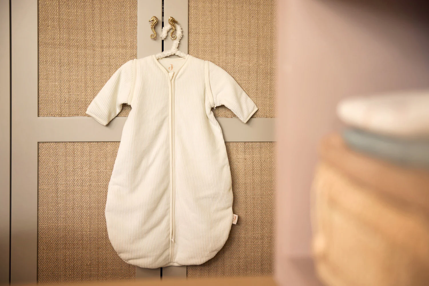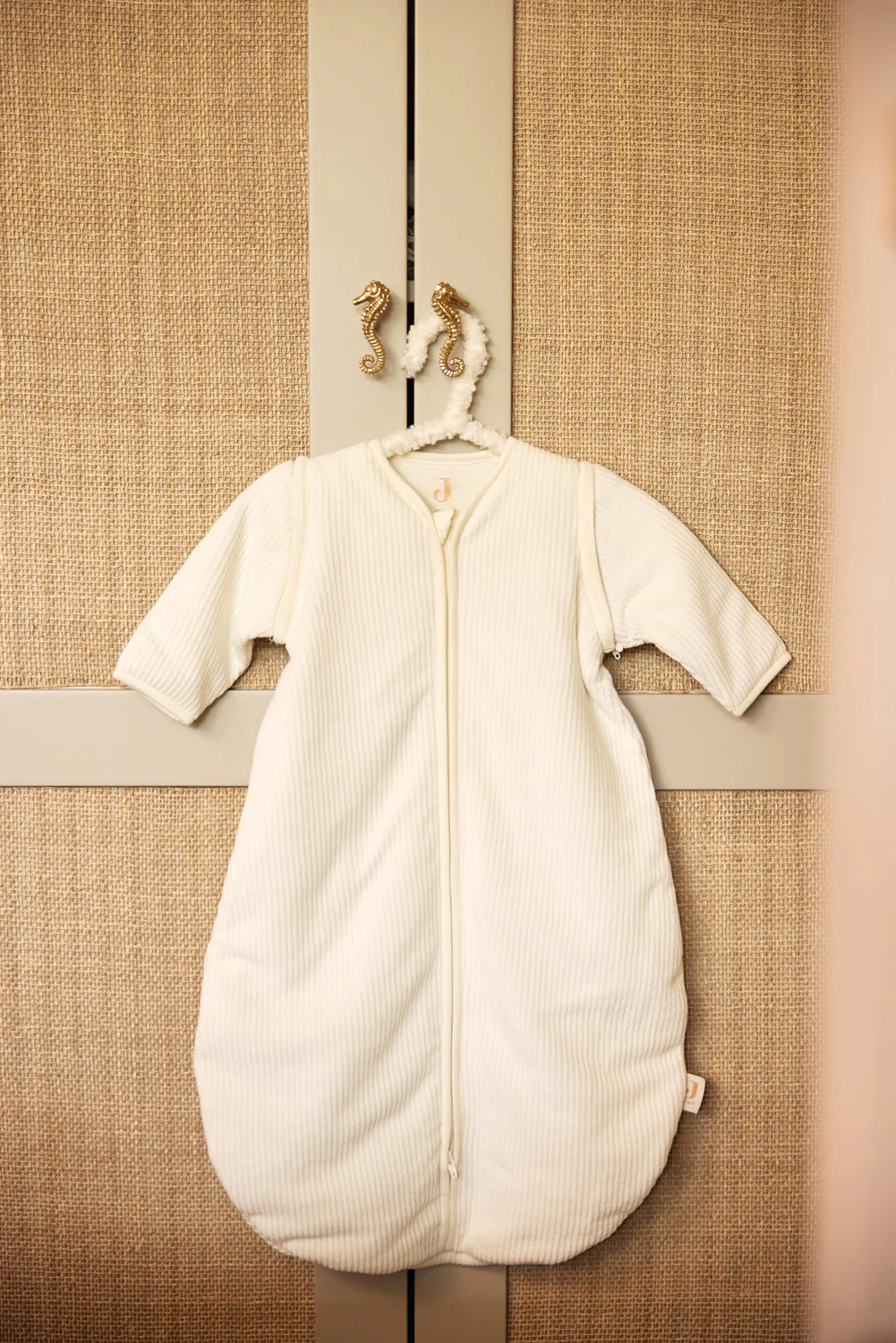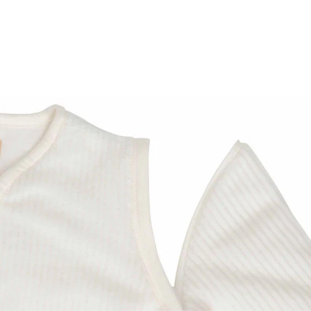 Spalna vreča s snemljivimi rokavi Rib Ivory v nežni bež barvi je izjemno mehka in zelo udobna za spanje.