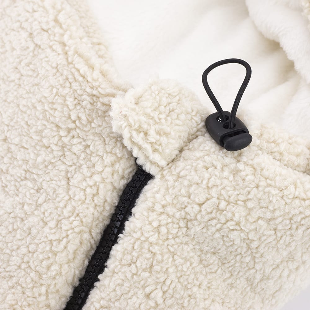 Globoka kapuca, ki jo je mogoče zategniti z elastičnim trakom, ovije malčkovo glavico in jo ščiti pred mrazom in vetrom. Malčku vam ni treba nadeti bundice ali tople kape, saj boste zaradi dodatnega šivka zaščitili tudi glavo in roke pred mrazom in vetrom.
