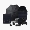 Ko je voziček zložen, je kompakten in samostoječ, priložen pa je tudi pas za nošenje.